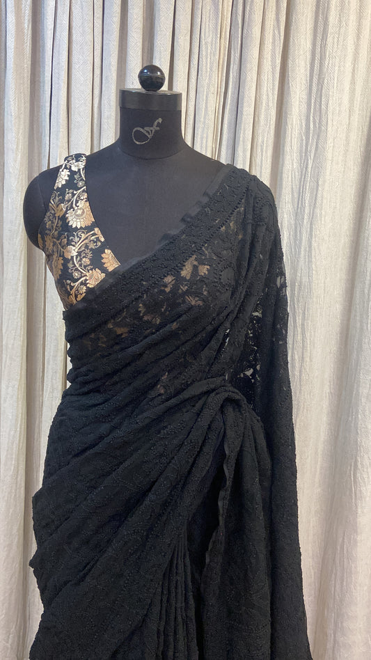 CHIKANKARI SAREE - BLACK